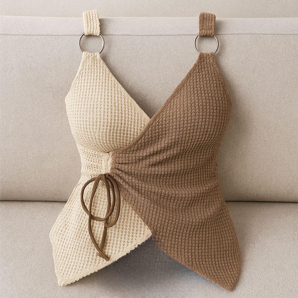 تاپ حلقهای با جنس مراکشی بیسکویتی، یکی از انتخابهای خاص و شیک برای استایلهای تابستانی و دورهمیهای دوستانه است. این تاپ با طراحی ساده و جذاب، فریسایز بوده و برای سایزهای ۳۶ تا ۴۴ مناسب است.