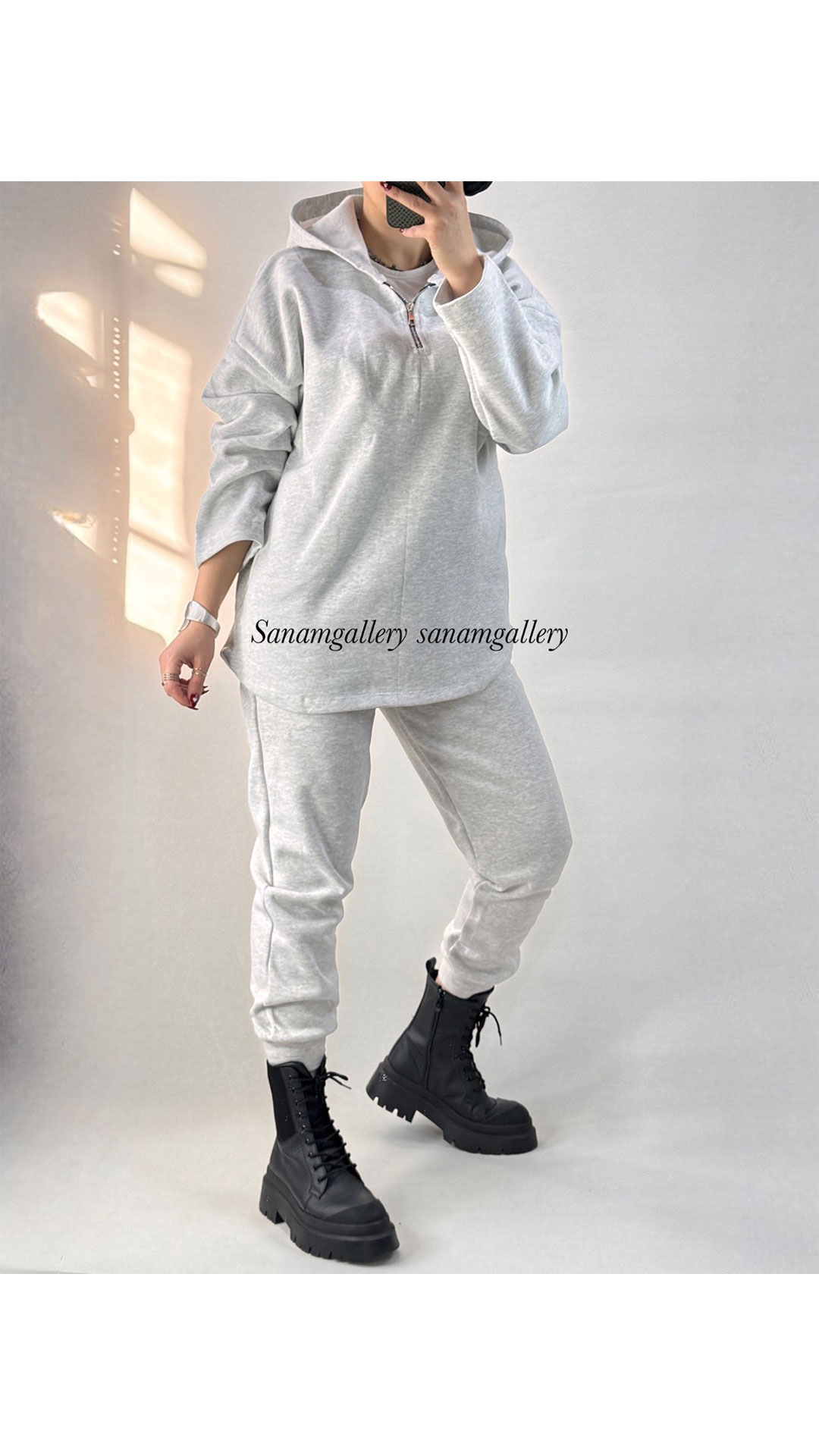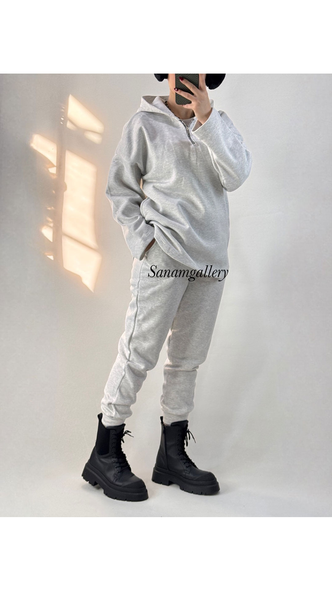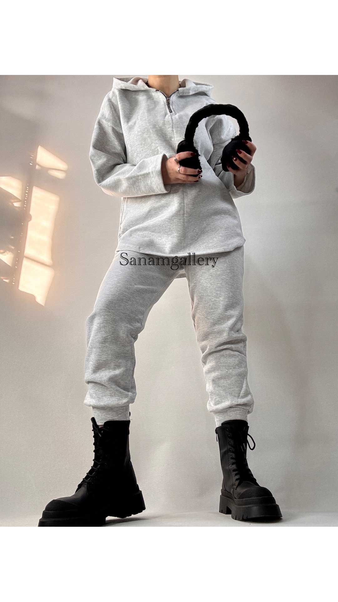 ست هودی نیم زیپ و جاگر زنانه 10079
