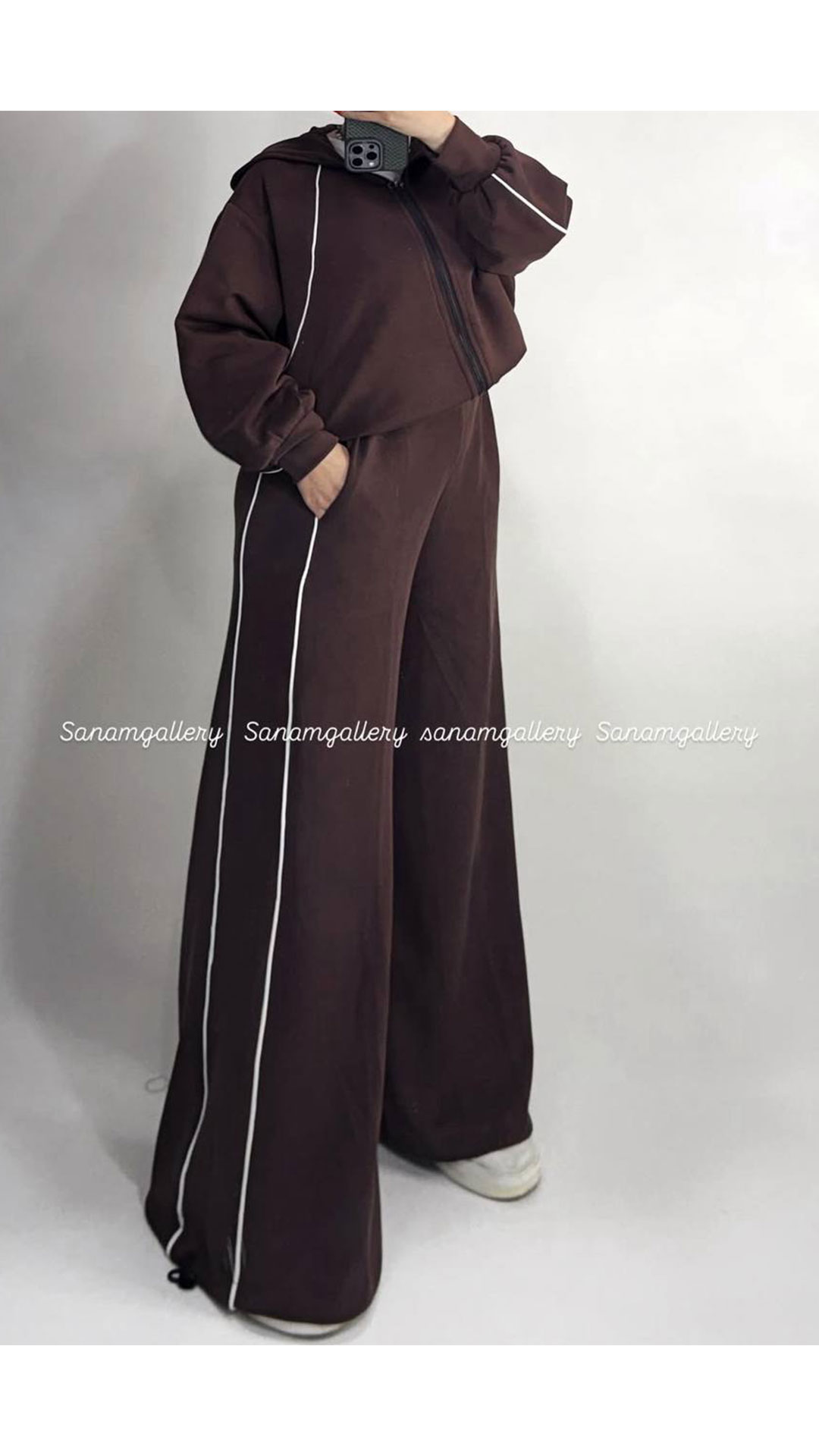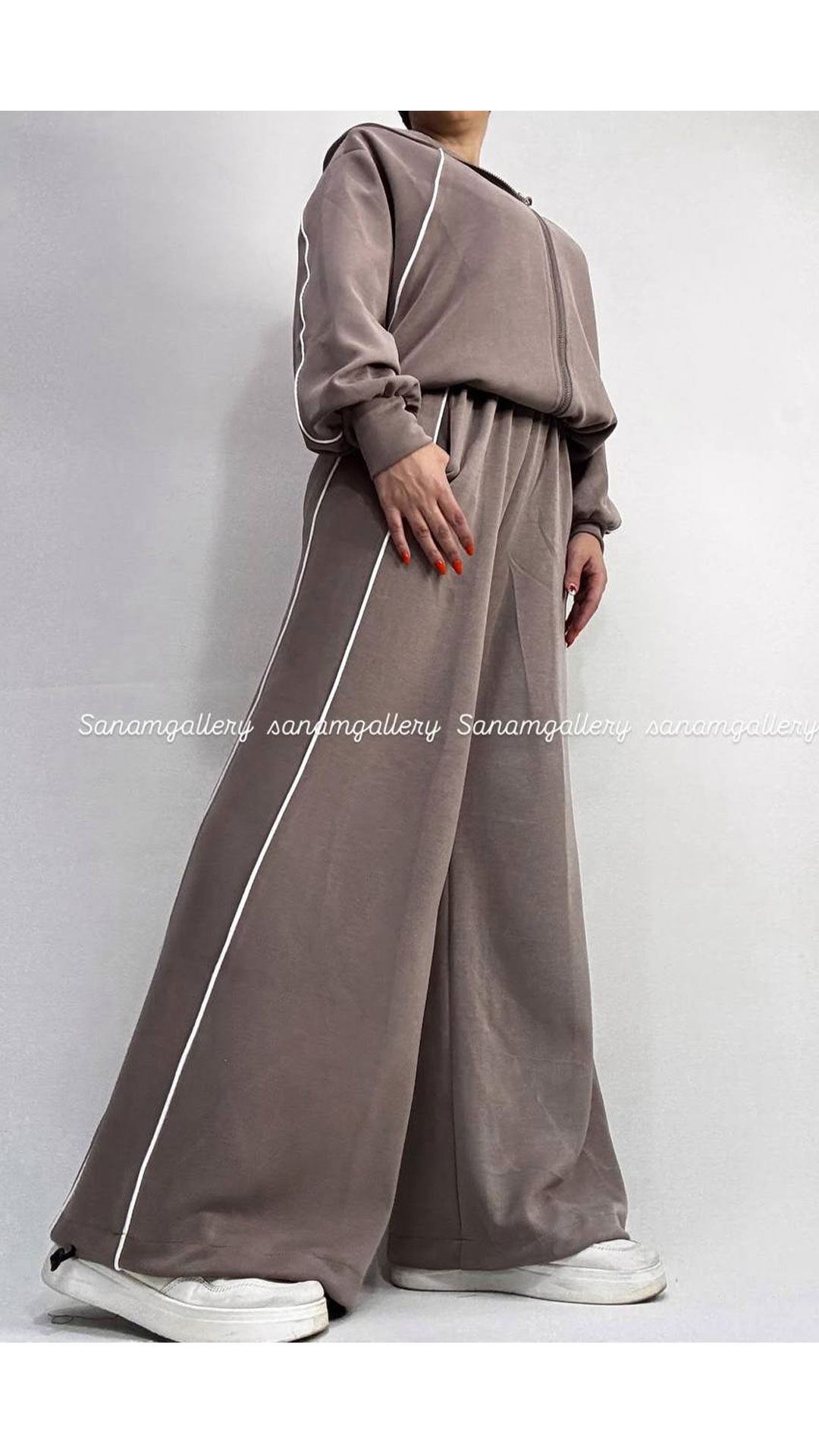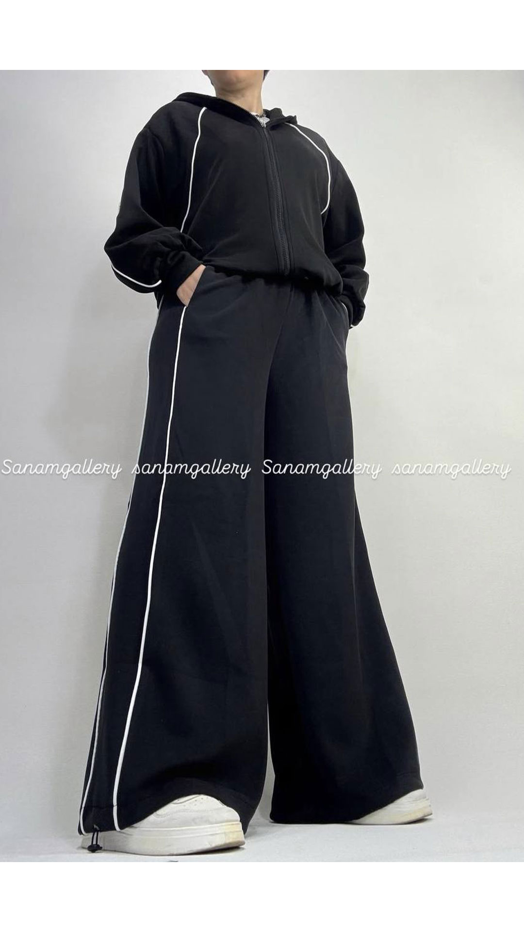 شلوار این ست با دمپای گتر طراحی شده که هم ترندی است و هم ظاهر اسپرت و متفاوتی ایجاد میکند. جنس پارچه بسیار لخت، نرم و خوشریخت بوده و برای استفاده روزمره، خانه یا استایل بیرونی گزینهای عالی محسوب میشود.